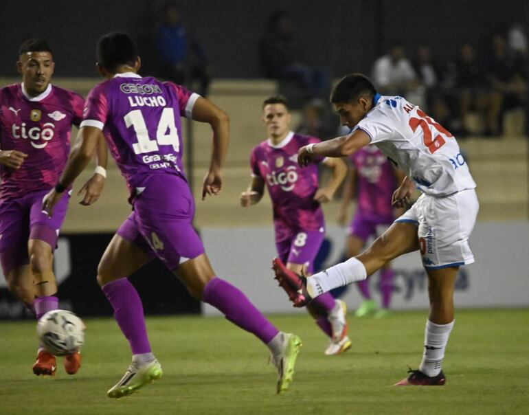 Centro de Blas Caceres que bajó Bailone, Leandro Meza saca un remate cruzado imposible para Morinigo, es el primero de la academia