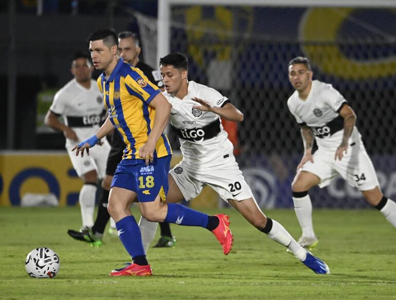 Olimpia está cometiendo algunas faltas en los primeros minutos intentando parar a los delanteros de Luqueño