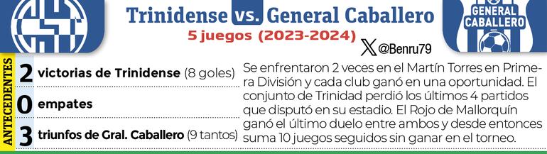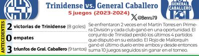 El estadio Martín Torres abre sus puertas para albergar el enfrentamiento entre Sportivo Trinidense (14 puntos) y General Caballero JLM (15 unidades).