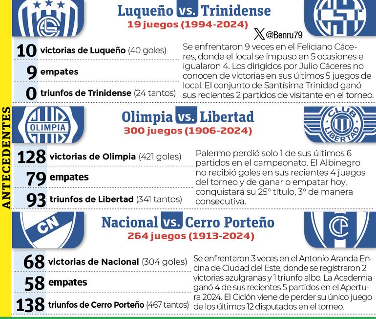 En segundo turno, a las 18:00, Libertad enfrentará a Olimpia, en el Defensores del Chaco, y Cerro Porteño va al Antonio Aranda para medir a Nacional.