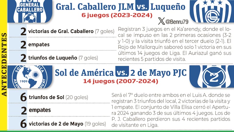 El General Caballero de Juan León Mallorquín recibe en su recinto a Luqueño, juego que pone frente a frente a dos equipos que tienen la obligación de arrancar con el pie derecho, apuntando a diferentes objetivos.