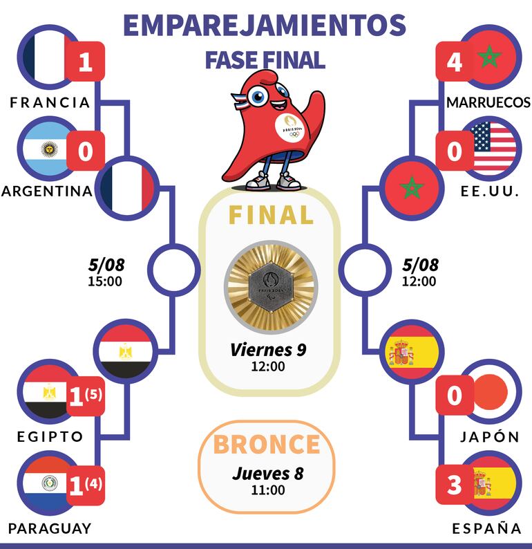 Los Bleus se citarán el lunes con Egipto, que venció más temprano en penales a Paraguay en Marsella, para definir a una de las selecciones que peleará por el oro en la final del 9 de agosto en el Parque de los Príncipes, en París.