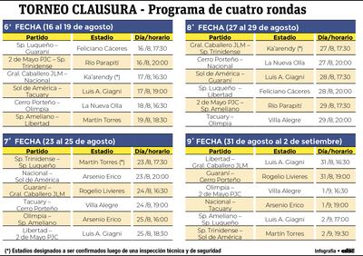 El tercer tradicional duelo del año entre Cerro Porteño y Olimpia, el primero del segundo campeonato, se fijó en el tercer domingo del mes, con localía del equipo azulgrana. Este encuentro es el único de esa jornada y los demás juegos de la ronda que se cumplirá a la que se disputa entre hoy y el lunes, se jugarán entre 16 al 19 de este mes.