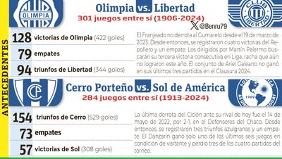En Villa Elisa, Olimpia y Libertad animarán, a las 16:00, un encuentro que siempre tiene en juego algo más que tres puntos. En barrio Obrero, Cerro Porteño recibirá a las 18:30 a Sol de América.