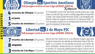 En el encuentro de fondo, el Libertad de Daniel Garnero, quien retornó a la institución tras la salida de Ariel Galeano, intentará comenzar a recuperar terreno en el Clausura, donde se ubica en la novena posición con solo seis puntos.