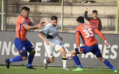 Desborde por la izquierda y remate de Matías Cáceres, gran tapada de Gastón Olveira