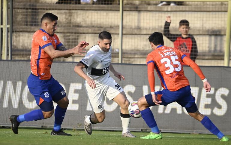 Tuvo para definir antes, pero controló el balón y Juan Feliú le sacó el balón a Derlis González