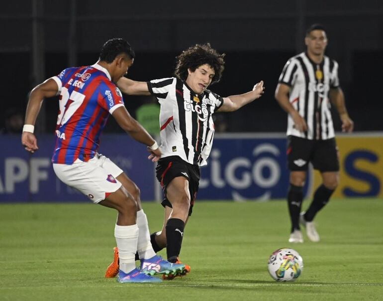 Ingreso de Lezcano por la izquierda, remate del liberteño que controla Jean Fernandes