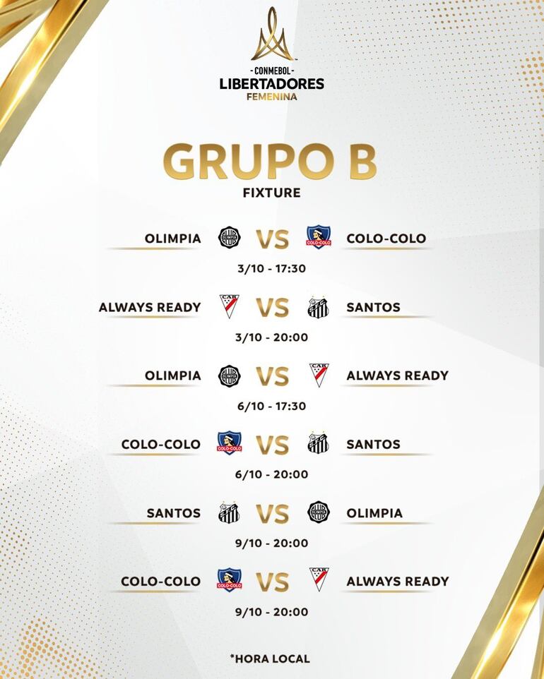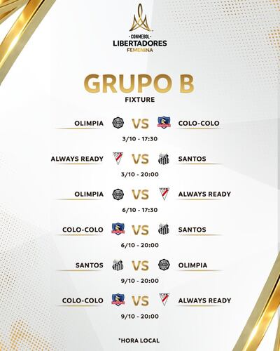 Guaraní tendrá su debut oficial el viernes 04 de octubre ante Deportivo Cali (20:00 horas) por el Grupo D (escenario a confirmar).