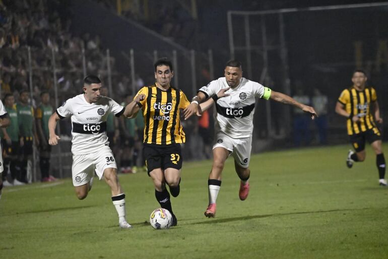 Olimpia con su intensidad y la presión alta fue el que comenzó mejor el partido, antes del minuto de juego ya llegó con un desborde de Olmedo y remate de Montenegro que se fue muy cerca del arco de Servio. Fueron minutos en los que los decanos se mostraron superiores ante las dudas de la defensa de Guaraní.