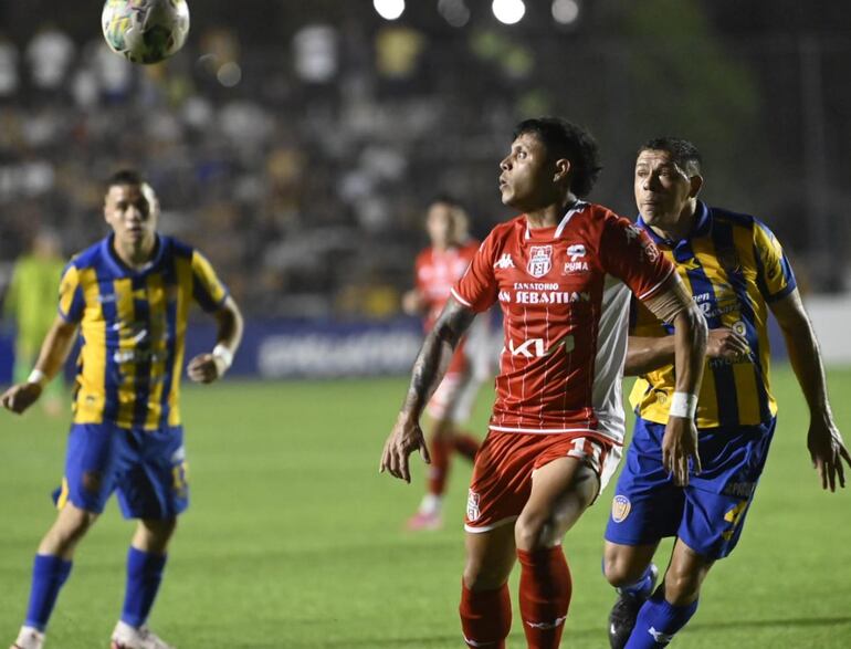 Nicolás Maná es amonestado por falta sobre Teodoro Arce
