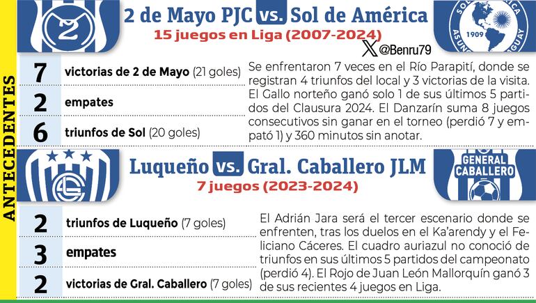 En el duelo de fondo, a las 20:00 en el ex Nido de las Águilas, Sportivo Luqueño oficiará de local ante el General Caballero JLM.