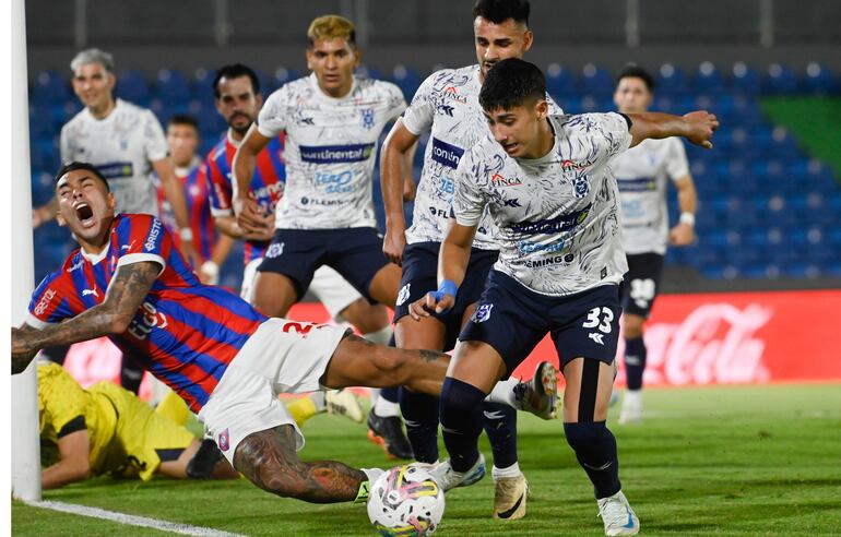 Alan Benítez y Araújo tuvieron chances claras para anotar de movida. El “2″ avisó a través de Rodrigo Ruiz Díaz en dos oportunidades, de cabeza y con remate rastrero, hasta que el propio atacante dispuso un penal que lo transformó en gol con un potente disparo al techo del arco que no lo pudo desviar Jean. Falta en el área de Piris de Motta sobre Javier Domínguez. Al contacto claro, el capitán le agregó actuación.
