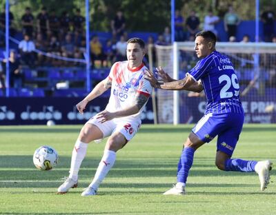 Sergio Dietze es amonestado por falta sobre Lucas Quintana