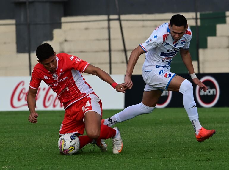 Sergio Bareiro es amonestado por falta sobre Alexis Rodas