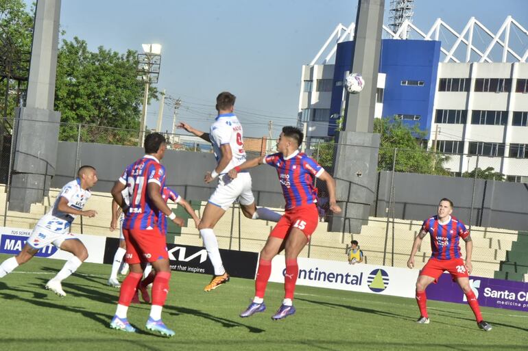 Remate cruzado de Enzo Giménez y Ronaldo de Jesús no pudo alcanzar de buena forma para empujar el balón