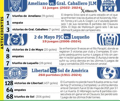 Esta sentencia al conjunto de Villa Elisa se registrará si el cuadro de Mallorquín se impone en el estadio Arsenio Erico a Sportivo Ameliano, que pelea el subcampeonato del torneo Clausura, y Sol de América no logra ganar a Libertad, en el Municipal de Carapeguá. Es decir que ni el empate le servirá al equipo dirigido por Roberto Torres si el cuadro de Humberto García derrota a elenco de Aldo Bobadilla. A todo o nada se juegan el “Rojo” de Mallorquín y el “Azul” de Villa Elisa, cuando después le restará solo una ronda al segundo campeonato de la temporada.