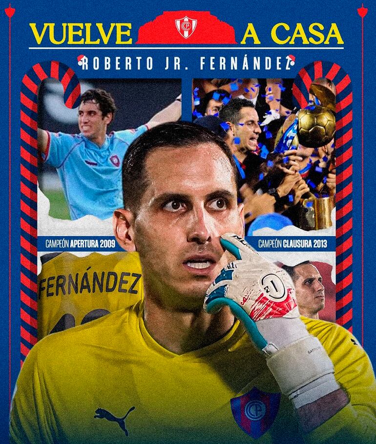 Roberto Junior Fernández (36 años), arquero titular de la selección nacional, retorna para cumplir su cuarta etapa en Cerro Porteño, en el que inició su carrera.