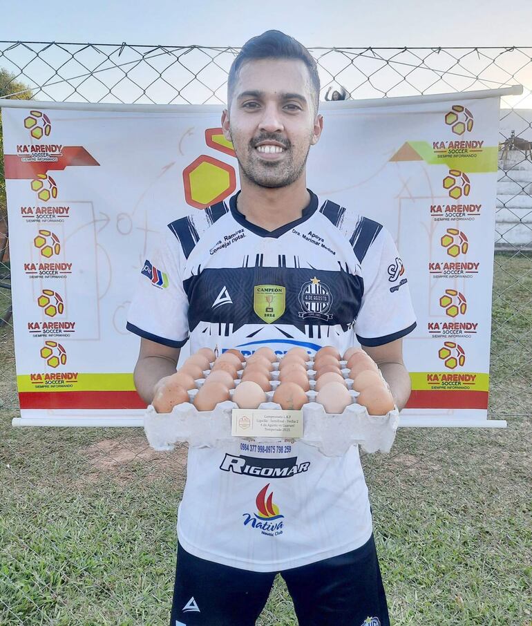 Finalizado el encuentro, Alex fue convocado. El ofensivo de 26 años, natural de José Domingo Ocampos, recibió la caja de alimento ovalado producido por las gallinas. Tras la sesión fotográfica correspondiente, también se alzó con el trofeo.