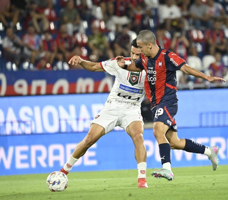 En su primera intervención en el partido, el extremo Juan Francisco Esteche recibe la cartulina de amonestación, luego de un manotazo al rostro de Gastón Giménez. Seguí la transmisión en vivo por ABCTV Paraguay en Youtube