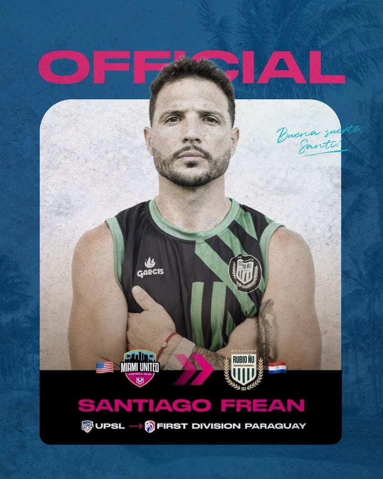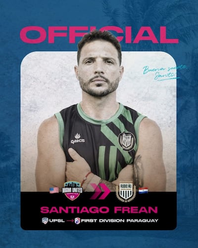 Santiago Frean es uno de los más de veinte fichajes que aparece en el equipo de Rubio Ñu, su cesión por dos años lo hizo oficial esta martes el Miami United Football Club de la United Premier Soccer League (UPSL).