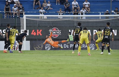 Minutos después, tras un tiro de esquina que no pudo rechazar el fondo franjeado, el lateral Barreto direccionó el esférico en brazo extendido de Delmás, para la sanción de la pena máxima, discutible por la poca distancia entre ambos. De la responsabilidad se encargó Wil Báez, quien ejecutó el potente derechazo cruzado, a media altura, que tuvo la espectacular respuesta, con una tapada a mano cambiada del paraguayo Gastón Olveira.