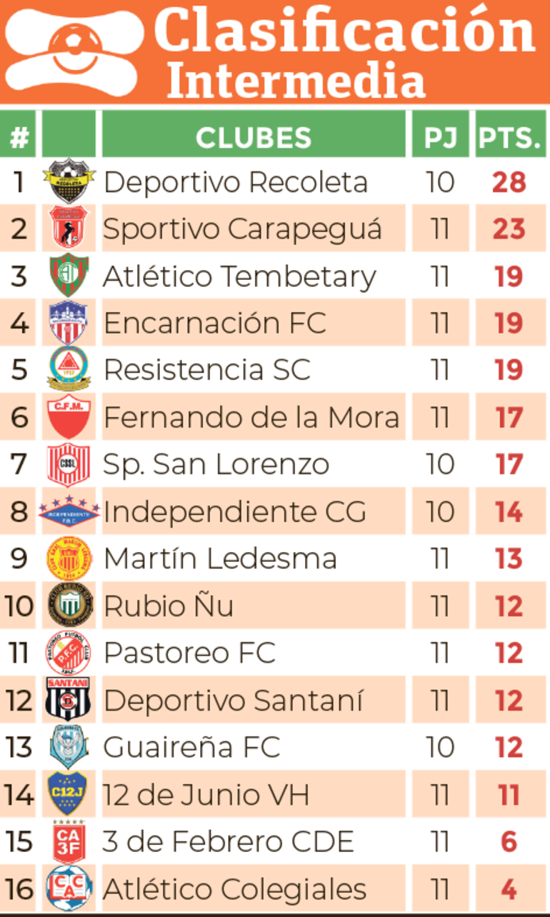 * Hoy, a las 19:30. Guaireña FC-Deportivo Recoleta, en el estadio Parque del Guairá. Árbitro: Aldo Quiñónez. Asistentes: Jorge Gómez y Marcelo Silva. Cuarto árbitro: Samuel Morales.