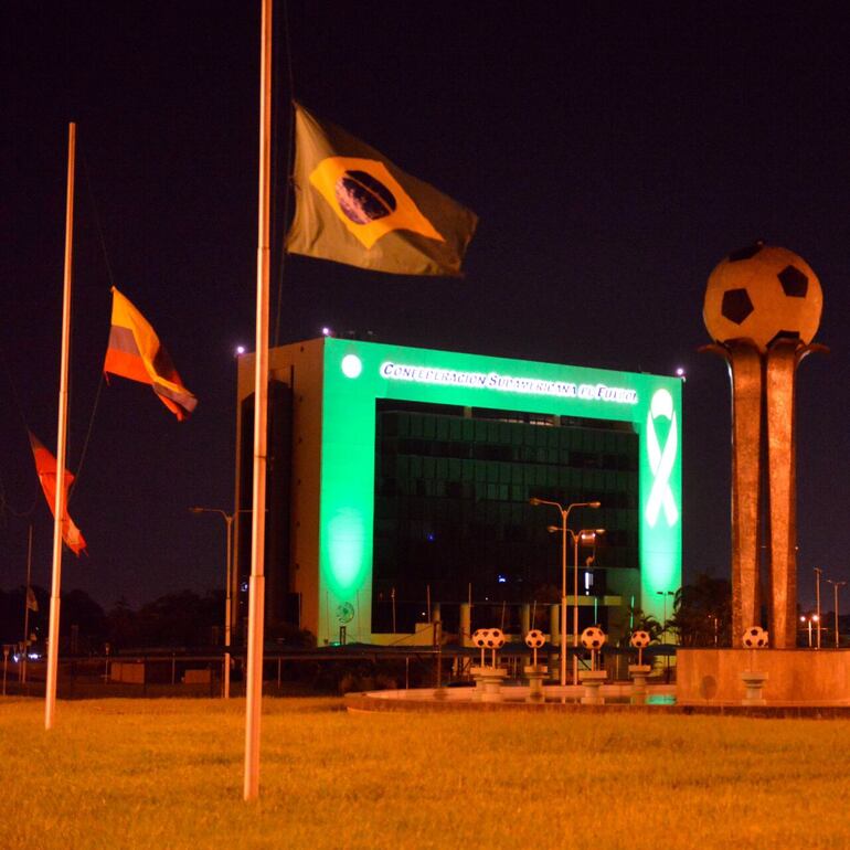 Los estandartes de Argentina, Chile, Uruguay, Paraguay, Perú, Bolivia, Ecuador, Colombia y Venezuela siguen todos izados a media asta frente al edificio, en el Gran Asunción, junto a la bandera de Brasil, país al que pertenecían la mayoría de las víctimas.
