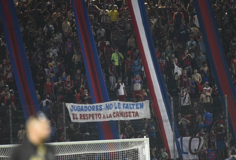 La bandera con la frase "Jugadores: no le falten el respeto a la camiseta" que colgaron los hinchas en la Gradería Norte de La Nueva Olla en el partido de Cerro Porteño contra Guaireña por la primera fecha del torneo Clausura 2023 del fútbol paraguayo.Fernando Romero, ABC Color