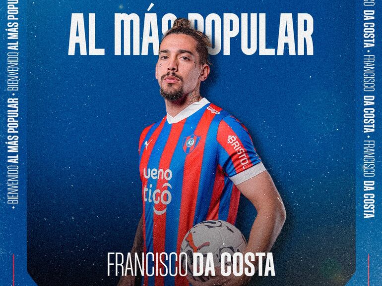 Cerro Porteño oficializó a Francisco Da Costa. “Francisco Da Costa es nuevo jugador del Ciclón de Barrio Obrero. ¡Bienvenido al más Popular, Xico!”, publicó el Ciclón en las redes sociales. El brasileño firmó por tres temporadas y ya había trabajado con el plantel en la última parte de la inter temporada en el Marbella Football Center de la ciudad de Málaga.