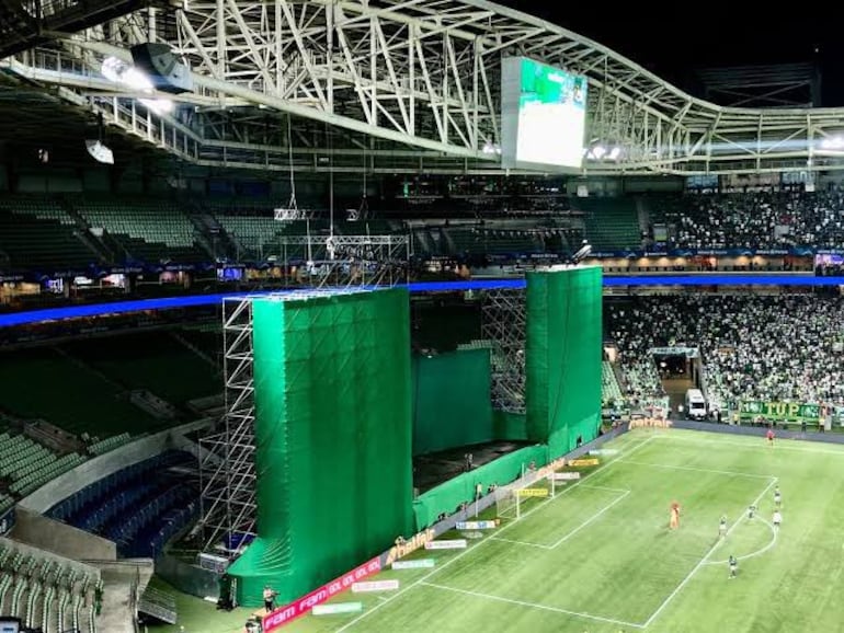 Debido a la gran cantidad de socios y aficionados en general con que cuenta el Palmeiras, la dirigencia verde suele instalar una pantalla gigante detrás de la tarima armada para el show, de modo a que los ubicados en ese sector, que tienen la visual obstaculizada, puedan al menos ver el espectáculo futbolístico en tiempo real, una rara experiencia para la cual se anotan miles de “torcedores”.