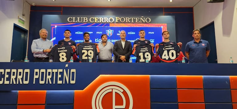 Cerro Porteño presentó a los cuatro refuerzos para la temporada 2026: el colombiano Santiago Mosquera, el paraguayo Cristhian Paredes y los argentinos Mateo Klimowicz y Pablo Vegetti. Los jugadores serán inscritos el viernes luego de que club haya levantado las sanciones de FIFA.