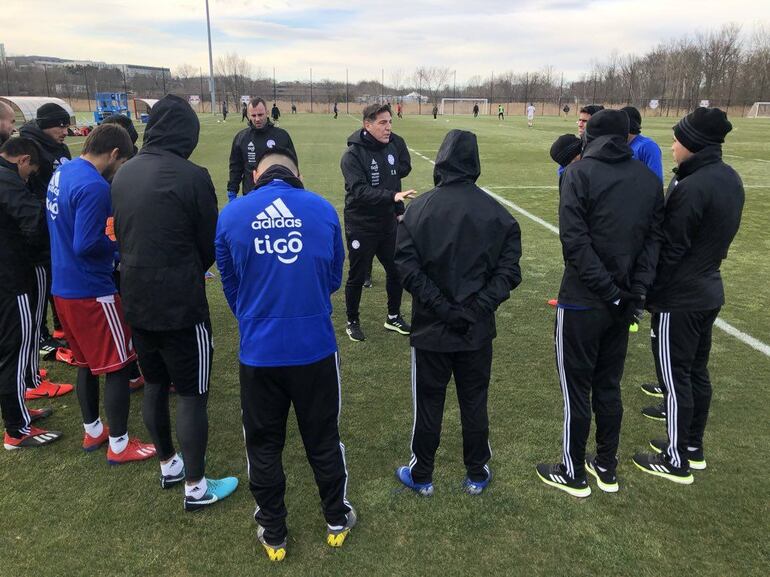 Eduardo Berizzo debutó en el baquillo de la Albirroja con una derrota contra Perú, con el solitario gol de Christian Cueva. Los que fueron titulares en el cotejo del viernes activaron en el gimnasio del hotel de concentración, mientras que el resto de jugadores se movilizó en el Red Bull Training Facility.