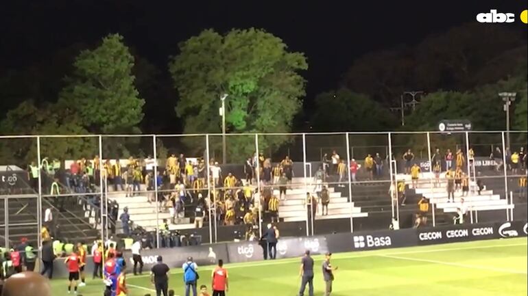 El clásico entre Libertad y Guaraní tuvo una previa incidentada. Poco después del ingreso de La Raza, la barra del Legendario, a la Gradería Norte del estadio La Huerta y minutos antes del partido, los hinchas visitantes fueron increpados por los cascos azules de la Policía Nacional. En consecuencia, los aficionados reaccionaron y hubo disparos con balines de goma.