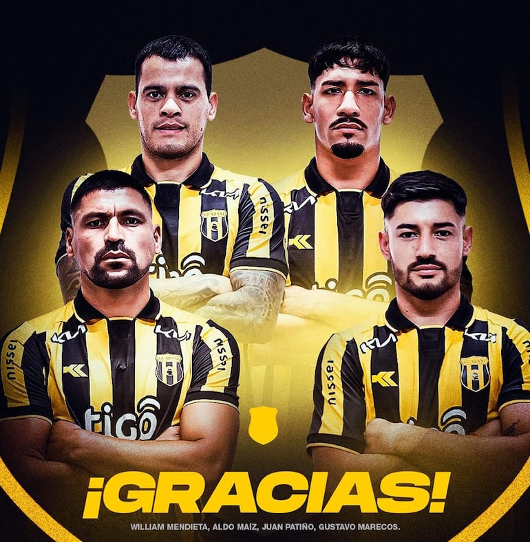 De acuerdo a la comunicación hecha por Guaraní, los que se marchan de la Toldería aurinegra son Juan Gabriel Patiño (36 años), William Gabriel Mendieta (36), Aldo Agustín Maíz (25) y Gustavo Alexis Marecos (24).