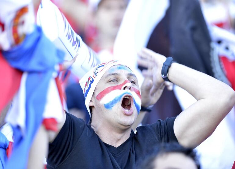 Ataviados con camisetas albirrojas y banderas tricolores, varios hinchas paraguayos llegaron hasta la mítica cancha que será escenario del vital duelo entre Paraguay y Uruguay.