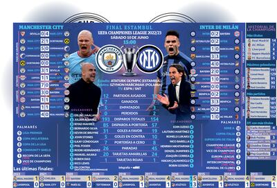 El Manchester City puede lograr hoy el ansiado título de Liga de Campeones que persigue desde hace tiempo. Y que falta en su palmarés. Para ello debe derrotar en Estambul (15:00, ESPJN y SNT) al Inter de Milán, que ya tiene tres Champions en su historial (1964, 1965 y 2010) y busca la cuarta.