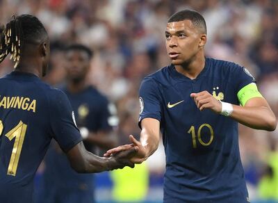 Deschamps salió con un 4-2-3-1 en el que un centro del campo madridista (Camavinga y Tchouaméni) guardaba las espaldas a la tripleta Mbappé, Griezmann, Coman, con Kolo Muani en punta.