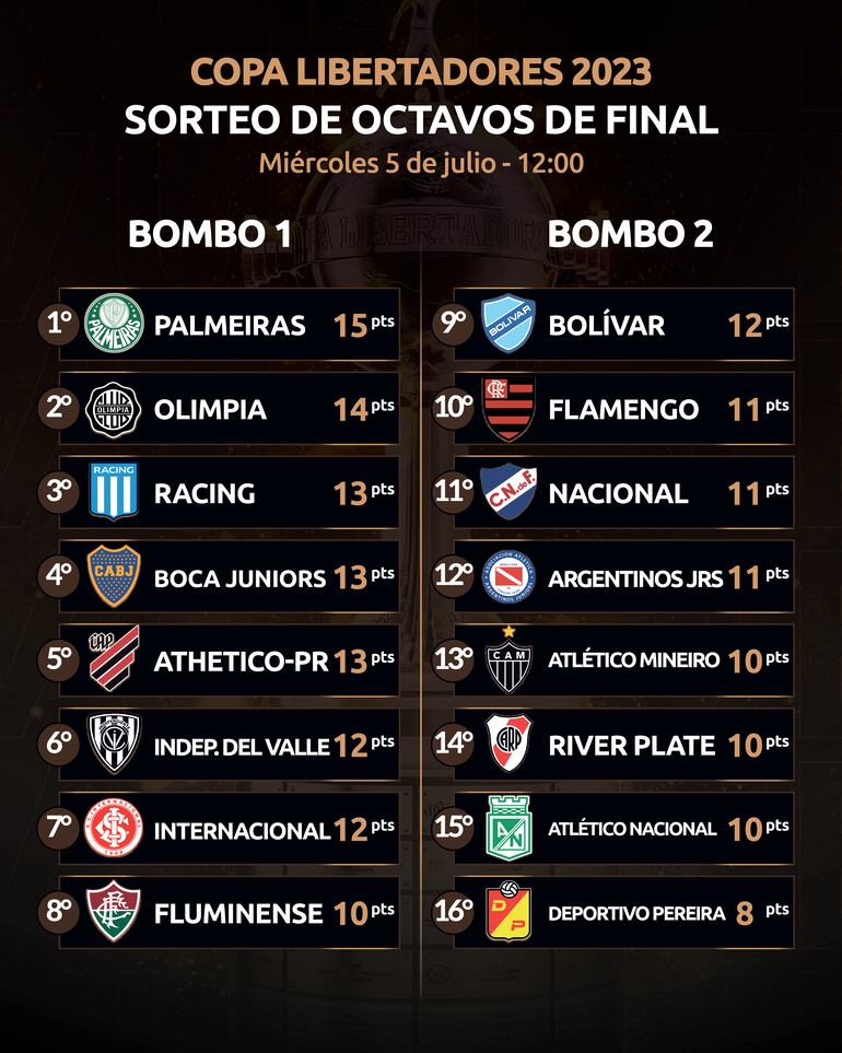 * El sorteo de octavos, que se realizará el miércoles 5, podría deparar clásicos como Flamengo-Fluminense y Boca-River.