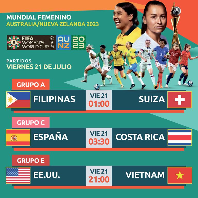 Grupo C: 03:30 España -Costa Rica, en Wellington.