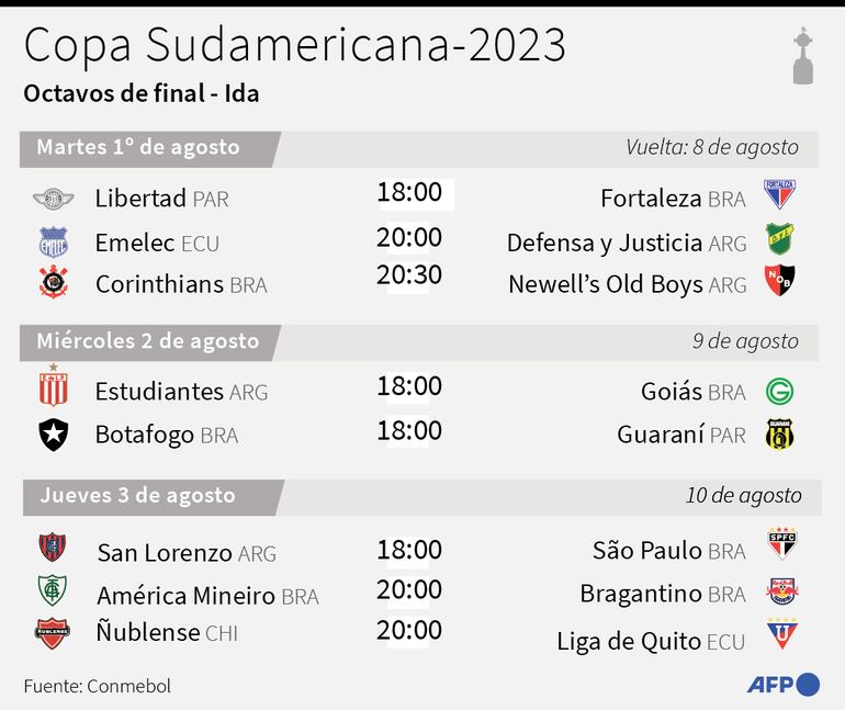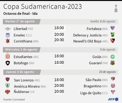 Antes de que el Ciclón choque con el tricolor paulista en Buenos Aires, el jueves, los duelos de ida de los octavos de final comenzarán a rodar el martes con Fortaleza viajando a Asunción a enfrentar a Libertad, Emelec abriendo las puertas de su casa a los argentinos Defensa y Justicia -campeones en 2020- y el esperado duelo entre Corinthians de Brasil y Newell’s Old Boys de Argentina.