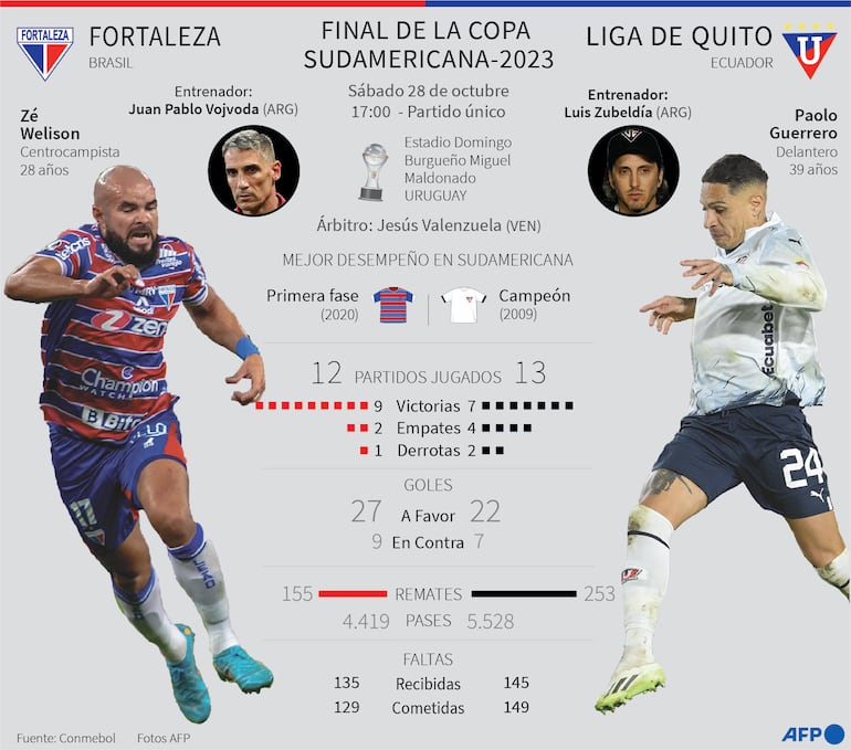 ¿Un bicampeonato de Liga de Quito o la primera Copa continental para el brasileño Fortaleza? el cara o cruz de una final única de la Sudamericana-2023 inédita y sin claro favorito al título.