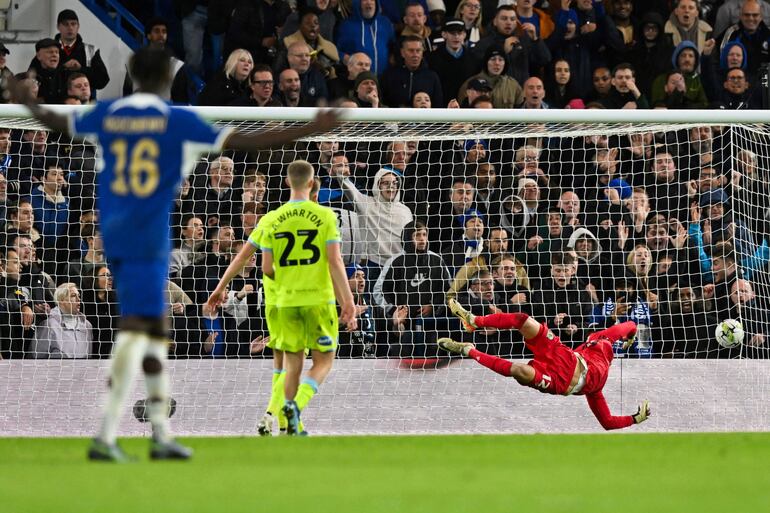 Para guardar la puerta a cero, Robert Sánchez, inadvertido todo el partido, hizo un paradón en el último minuto, con una gran mano abajo a un disparo prácticamente a bocajarro, y evitó el 2-1.
