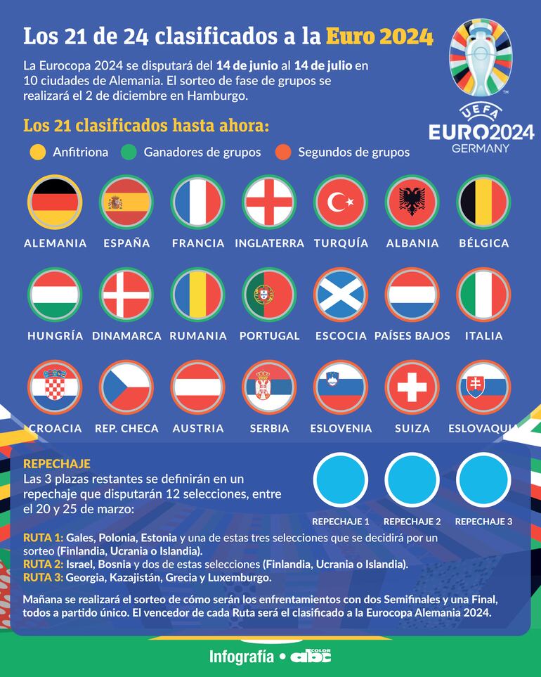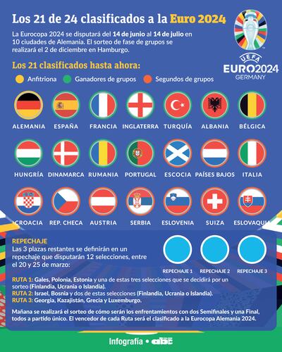 * La ‘Cuadriculada’ es la 21ª y última selección clasificada directamente al torneo continental. Las tres últimas plazas se dirimirán en marzo en unos repechajes entre doce selecciones (ver infografía).
