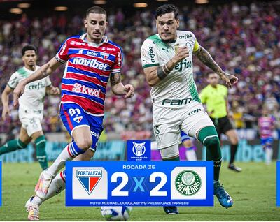 El Palmeiras dejó de ser el líder en solitario tras empatar 2-2 en su visita al Fortaleza y ver como el Flamengo le igualaba a 63 puntos con una victoria por 3-0 a domicilio contra el colista y ya descendido América Mineiro.
