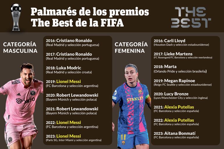 El criterio de desempate en los The Best es quien haya sumado más elecciones en primer puesto por parte de los capitanes de los equipos nacionales, caso en el que gana Messi.