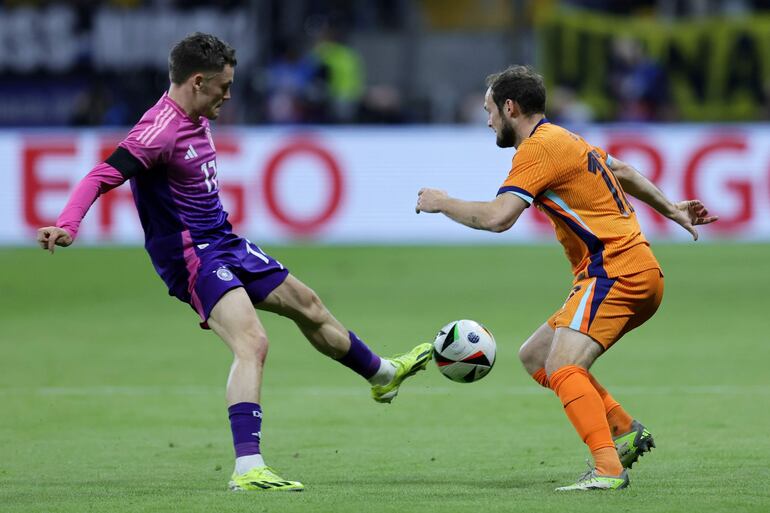 Los neerlandades apostaban ante todo a los balones largos desde atrás y tuvieron una buena llegada poco después cuando Donnyel Malen le ganó la espalda a la defensa alemania pero no encontró receptor para su centro.