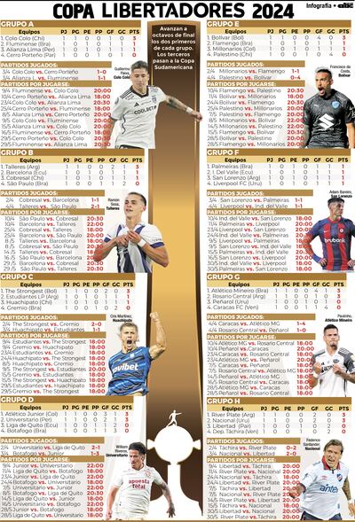 La fase de grupos comenzará este martes en la Copa Libertadores con cinco partidos entre los que destacan el del campeón de 2023, Fluminense, que recibirá al líder Colo Colo, que tiene 3 puntos, en la disputa por el primer lugar del Grupo A.