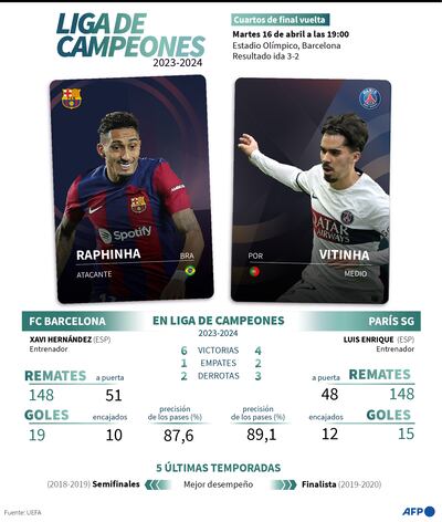 Los catalanes se impusieron 2-3 en el Parque de los Príncipes la pasada semana en la ida de cuartos del torneo continental, lo que disparó la ilusión de los azulgranas, que no han vuelto a unas semifinales desde 2019.