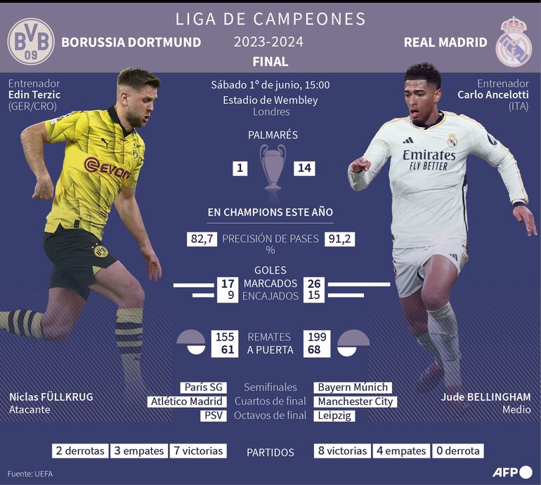 Sobre el papel, todo parece decantarse del lado del reciente campeón español en este enfrentamiento ante el quinto clasificado de la liga alemana que acaba de terminar, pero el equipo amarillo se ganó su plaza para Wembley sorprendiendo al París Saint-Germain de Kylian Mbappé en semifinales.